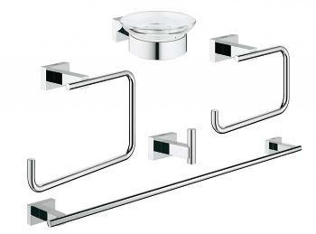 materiál: sklo / kovset obsahuje:miska na mýdlo s držákem (40 754 001)Držák na ručníky, 558 mm (40 509 001)Držák toaletního papíruHáček na koupací plášť (40 511 001)Kruhový držák na ručníky (40 510 001)skryté upevněníGROHE StarLight® chromový povrch