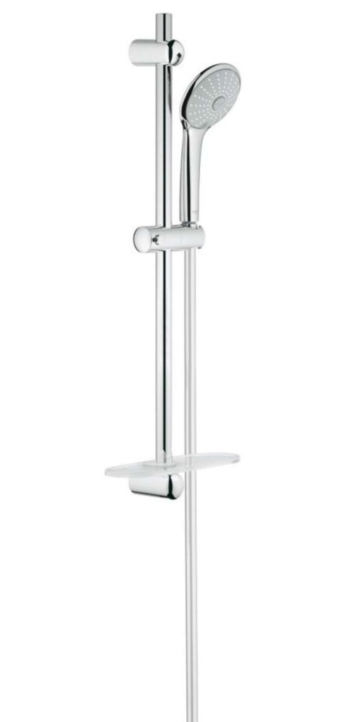Sprchová souprava obsahuje ruční sprchu Massage průměr hlavice: 110 mm sprchový proud: Rain/Massage/SmartRain GROHE DreamSpray perfektní vodní paprsky GROHE SprayDimmer snadné přepínání mezi sprchovými proudy GROHE StarLight chromový povrch GROHE SpeedClean odstranění vodního kamene přetřením vnitřní systém WaterGuide pro delší životnost vhodné pro průtokové ohřívače vody sprchovou tyč s poličkou EasyReach výška tyče: 600 mm s držáky na zeď, kluzáky a otočným držákem GROHE QuickFix horní držák nastavitelný pro přizpůsobení existujících otvorů GROHE StarLight chromový povrch sprchovou hadici Silverflex délka: 1750 mm DN 15 x DN 15 sprchová hadice s hladkým povrchem Twistfree otočný kónus s flexibilním a oboustranným závitem proti překroucení GROHE StarLight chromový povrch