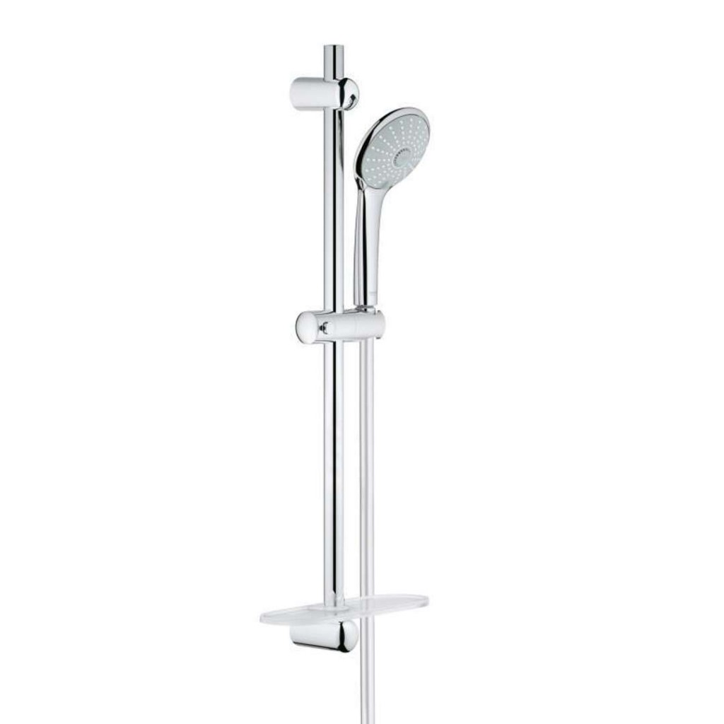 Sprchová souprava 110 ruční sprcha Massage (27 239) sprchová tyč, výška 600 mm (27 499 000) Silverflex sprchová hadice, délka 1750 mm (28 388 000) GROHE EasyReach polička (27 596 000) GROHE EcoJoy® 9,5 l/min omezovač průtoku GROHE DreamSpray® perfektní vodní paprsky GROHE SprayDimmer® - snadné přepínání mezi sprchovými proudy GROHE StarLight® chromový povrch GROHE QuickFix® (horní držák nastavitelný pro přizpůsobení existujících otvorů) GROHE SpeedClean - odstranění vodního kamene přetřením Vnitřní WaterGuide pro delší životnost Twistfree - zabraňuje zkroucení sprchové hadice doporučený minimální tlak 1,0 bar