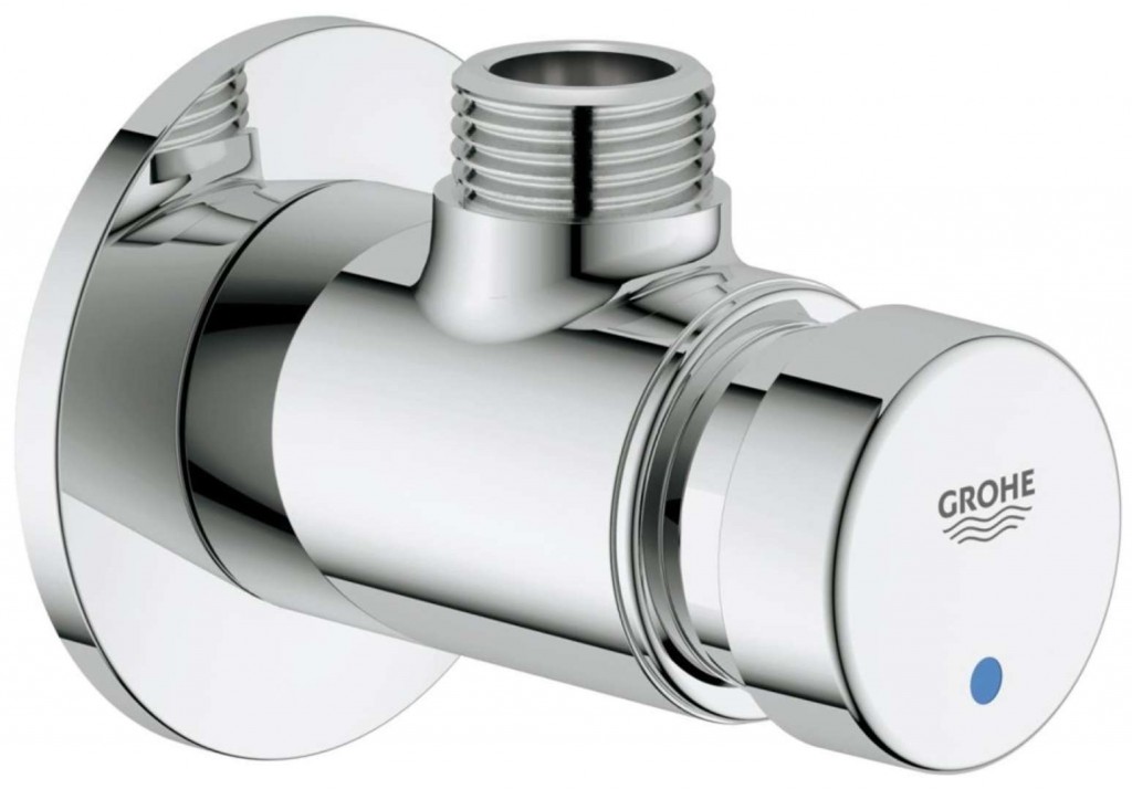 Euroeco Cosmopolitan TSamouzávěrný sprchový ventil, DN 15 montáž na omítku pro studenou nebo předem smíšenou vodu označení modrá/červená GROHE StarLight chromový povrch 3 nastavení času: krátký - střední - dlouhý (tovární nastavení: krátký), cca 7, 15, 30 sec (v závislosti na tlaku) rozeta minimální tlak 1,0 bar