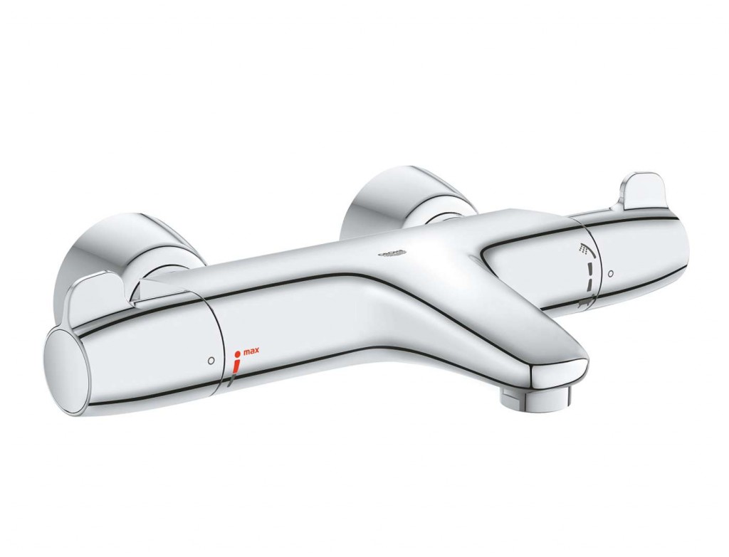 Termostatická vanová baterie, DN 15 montáž na stěnu kovové ergonomické rukojeti vícefunkční přepínač aquadimmer: omezovač průtoku, integrovaný uzávěr smíšené vody, přepínání vana/sprcha GROHE TurboStat kompaktní kartuše s voskovaným termočlánkem ovládání teploty s nastavitelným dorazem 35°C - 43°C snadná termální dezinfekce pomocí speciálního klíče výstup sprchy dole DN 15 s integrovanou zpětnou klapkou ovladač teploty s bezpečnostní zarážkou z kovu laminární perlátor síťka na nečistoty S-přípojky s krytkami GROHE Quickfix pro rychlou výměnu zpětných ventilů v připojeních GROHE CoolTouch sestávající z vždy chladného povrchu a CoolTouch S - přípojek GROHE StarLight chromový povrch GROHE SafetyPlus Speciální klíč není součástí dodávky.