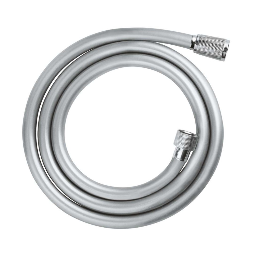 Sprchová hadice VitalioFlex Comfort délka: 1500 mm materiál: kov pevnosti v tahu 500 N tlaková odolnost až 5 bar tepelná odolnost 70°C AntiFold univerzální ochrana proti zlomení přípojka G 1/2" x 1/2" TwistStop otočný kónus GROHE ProGrip s rýhovanou strukturou GROHE StarLight chromový povrch