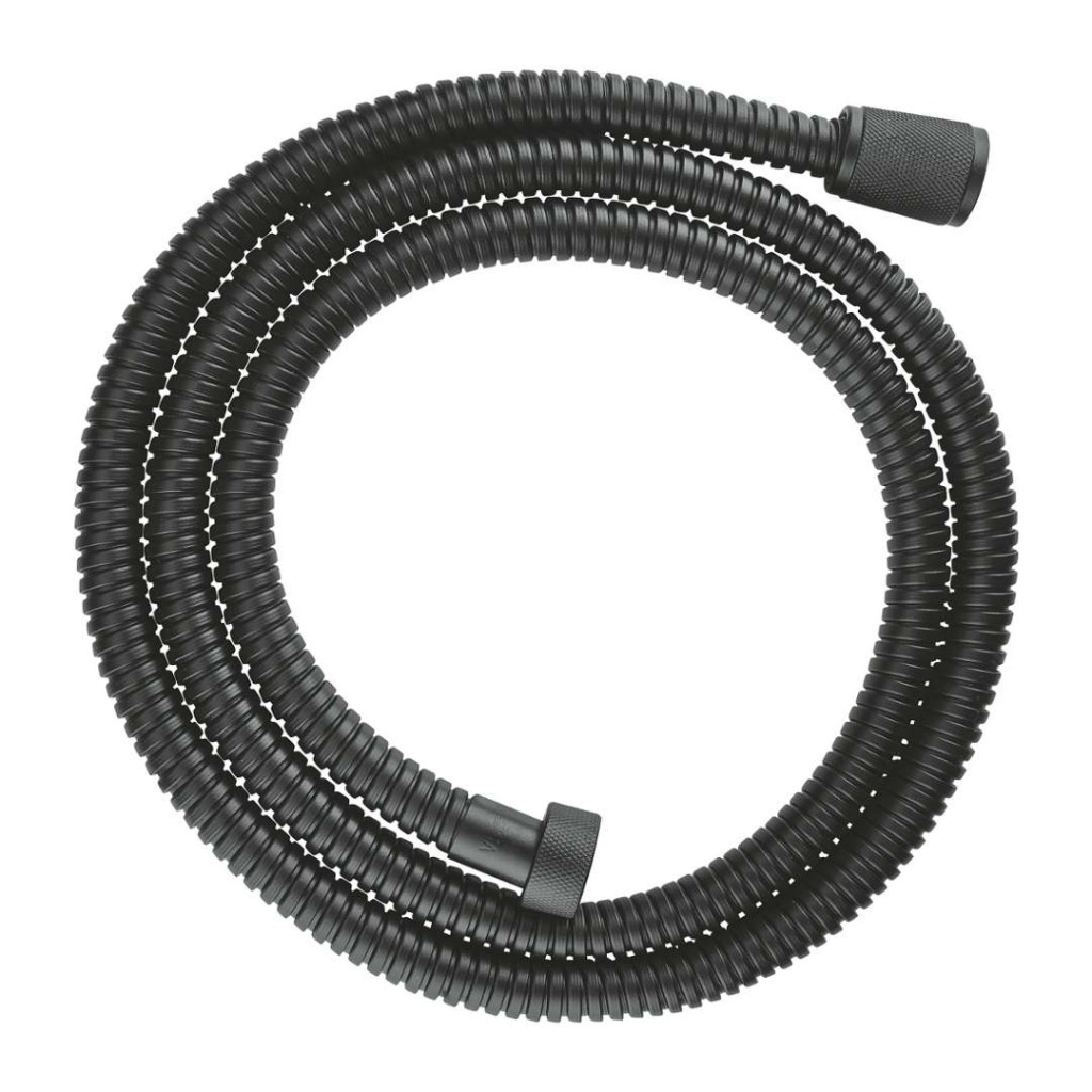 Sprchová hadice VitalioFlex Metal Long-Life barva: velvet black - černá délka: 1500 mm materiál: kov pevnosti v tahu 750 N tlaková odolnost až 16 bar tepelná odolnost 75°C Long-Life zesílené provedení pro dlouhou životnost AntiFold univerzální ochrana proti zlomení přípojka G 1/2" x 1/2" GROHE ProGrip s rýhovanou strukturou GROHE StarLight povrch