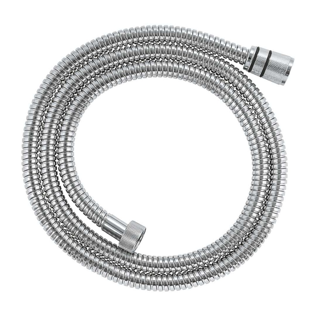 Sprchová hadice VitalioFlex Metal Long-Life TwistStop délka: 1500 mm materiál: kov pevnosti v tahu 500 N tlaková odolnost až 16 bar tepelná odolnost 75°C Long-Life zesílené provedení pro dlouhou životnost AntiFold univerzální ochrana proti zlomení přípojka G 1/2" x 1/2" kónus se silikonovým proužkem proti překroucení hadice GROHE ProGrip s rýhovanou strukturou GROHE StarLight chromový povrch