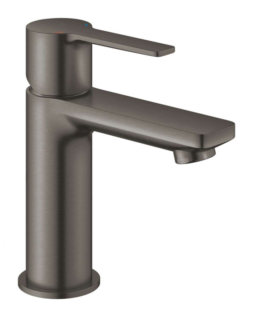 Páková umyvadlová baterie DN15, velikost S barevné provedení: kartáčovaný Hard Graphite jednootvorová montáž kovová páka GROHE SilkMove keramická kartuše 28 mm s omezovačem teploty GROHE StarLight chromový povrch GROHE EcoJoy perlátor 5,7 l/min GROHE QuickFix Plus rychloupevňovací systém s odtokovou soupravou DN 32 push-open flexi připojovací hadičky