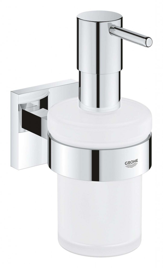 Dávkovač tekutého mýdla s držákem materiál: sklo/kov objem nádobky: 160 ml GROHE Long-Life Shine chromový povrch skryté upevnění Instalace vrtáním nebo lepením - upevňovací materiál (šrouby a hmoždinky) je součástí balení. Lepidlo je možné dokoupit - doporučujeme dokoupit 1x GROHE QuickGlue A1.