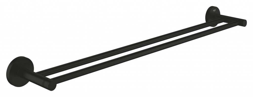 Držák ručníků dvojitý materiál: kov barva: matte black - matná černá GROHE Long-Life povrch funkční délka: 600 mm, celková délka: 654 mm skryté upevnění upevňovací materiál (šrouby a hmoždinky) je součástí balení