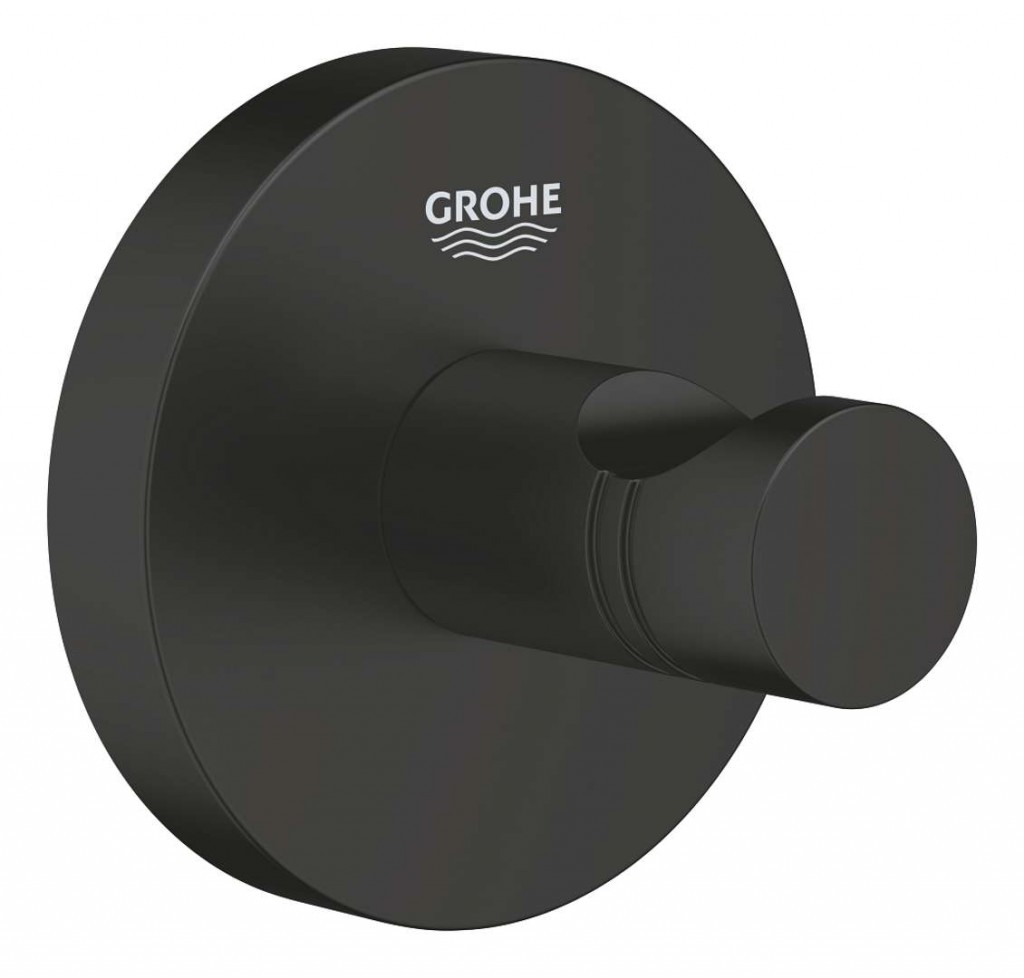 Háček na koupací plášť barva matná černá materiál kov GROHE Long-Life povrch skryté upevnění instalace vrtáním nebo lepením včetně instalačního materiálu pro vrtání (šrouby a hmoždinky) pro instalaci lepením je potřeba dokoupit lepící sadu GROHE QuickGlue A1