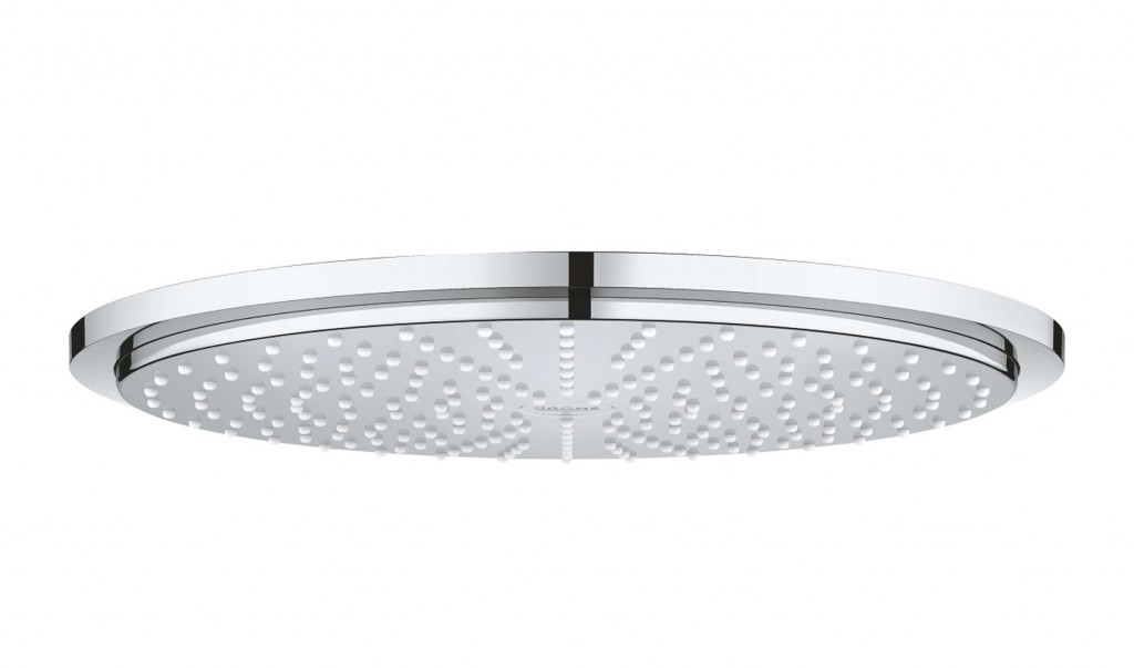 Horní sprcha sprchový proud: Rain průměr hlavice: 310 mm materiál: kov GROHE StarLight chromový povrch GROHE EcoJoy omezovač průtoku 6,8 l/min GROHE DreamSpray perfektní vodní paprsky GROHE SpeedClean odstranění vodního kamene přetřením kulový kloub s otočným úhlem 20° ± 20° přípojný závit DN 15 vhodné pro průtokové ohřívače vody Připojení hlavové sprchy na sprchové rameno nebo stropní výpusť není součástí dodávky.
