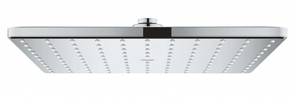 Horní sprcha rozměr sprchové hlavice 310 mm GROHE PureRain sprchový proud chromová spodní část sprchy kloub s úhlem otočení ± 10° přípojný závit DN 15 GROHE EcoJoy omezovač průtoku 6,6 l/min GROHE DreamSpray perfektní vodní paprsky GROHE StarLight chromový povrch GROHE SpeedClean odstranění vodního kamene přetřením vnitřní WaterGuide pro delší životnost vhodné pro průtokové ohřívače vody