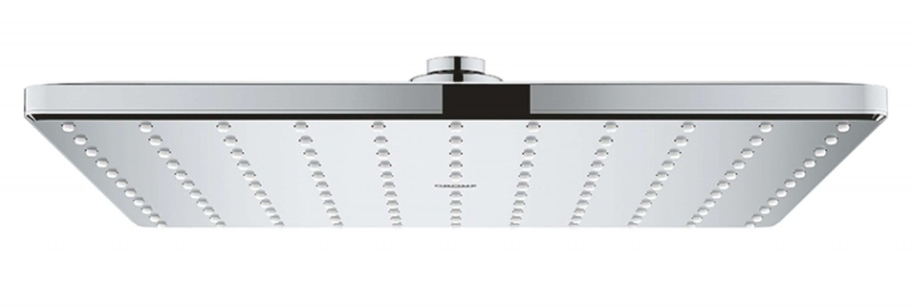 Horní sprcha čtvercová sprchová hlavice 310 mm chromová spodní část sprchy kloub s úhlem otočení ± 10° přípojný závit DN 15 GROHE PureRain sprchový proud GROHE DreamSpray perfektní vodní paprsky GROHE StarLight chromový povrch GROHE SpeedClean - odstranění vodního kamene přetřením vnitřní WaterGuide pro delší životnost vhodné pro průtokové ohřívače vody doporučený minimální tlak vody 1,0 bar