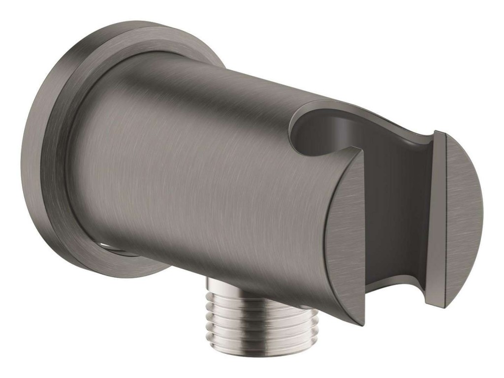 Nástěnná přípojka s integrovaným držákem sprchy barva: kartáčovaný Hard Graphite GROHE Long-Life povrch s kulatou rozetkou, průměr 48 mm připojovací závit samec 1/2" celokovové těleso ochrana proti zpětnému toku vody