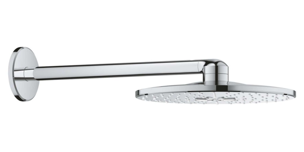 Horní sprcha Rainshower SmartActive 310 se sprchovým ramenem průměr sprchové hlavice 310 mm dva sprchové proudy: GROHE PureRain, ActiveRain sprchové proudy lze přepínat nebo spustit současně přepínání proudů pomocí ergonomických otočných tlačítek na termostatické baterii (není součástí dodávky) GROHE PureRain je jemný proud napodobující pobyt v dešti GROHE ActiveRain je mimořádně stimulující, výkonný proud GROHE DreamSpray perfektní vodní paprsky GROHE StarLight chromový povrch GROHE SpeedClean - odstranění vodního kamene přetřením horizontální sprchové rameno 430 mm vnitřní WaterGuide pro delší životnost Instalace horní sprchy je na základní těleso, které není součástí dodávky.