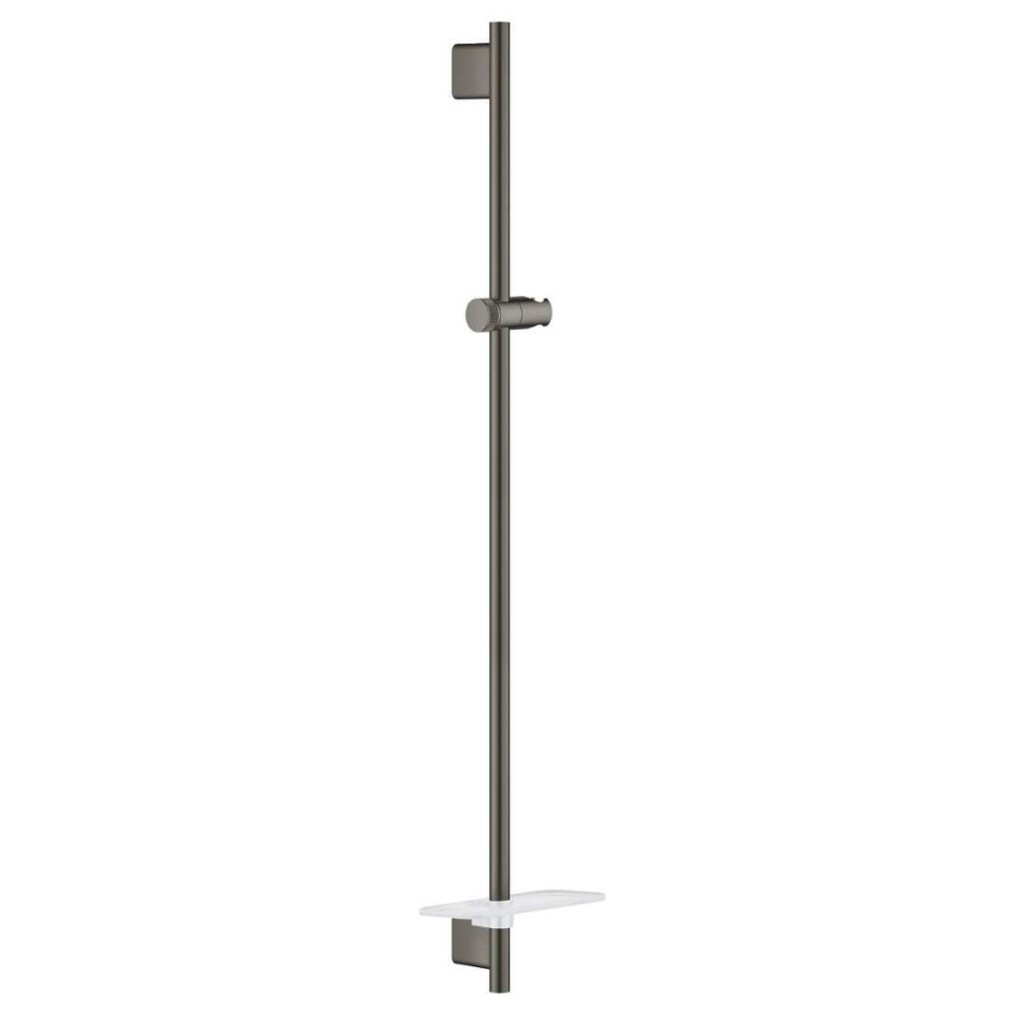 Sprchová tyč s poličkou délka 900 mm s nástěnnými kovovými držáky pohyblivý držák s kloubem GROHE EasyReach polička je součástí GROHE QuickFix Plus nastavitelná vzdálenost mezi držáky pro přizpůsobení do stávajících otvorů GROHE TileFix nastavení hloubky držáků sprchové tyče GROHE StarLight povrch