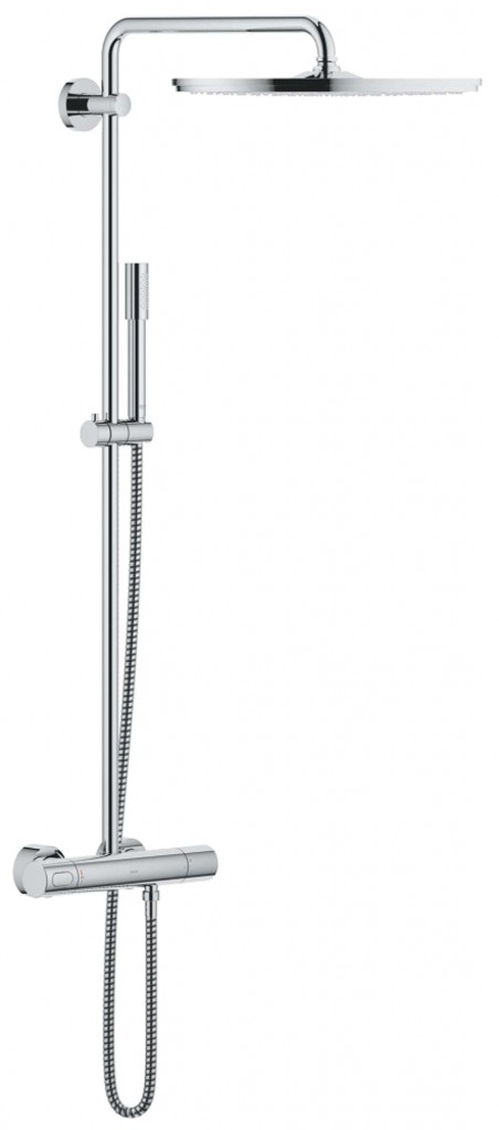 Sprchový set obsahuje termostatickou sprchovou baterii nástěnný termostat s aquadimmerem změna mezi hlavovou a ruční sprchou umožňuje GROHE StarLight chromový povrch GROHE CoolTouch pro stále chladný povrch GROHE SafeStop bezpečnostní tlačítko na 38°C GROHE SafeStop Plus volitelný omezovač teploty na úrovni 43 ° C GROHE TurboStat kompaktní kartuše s voskovaným termočlánkem vhodné pro průtokové ohřívače od 18 kW minimální průtok 7 l/min minimální tlak 1,0 bar kovovou hlavovou sprchou Rainshower Cosmopolitan se sprchovým ramenem 450 mm dešťový proud (široký sprchový paprsek) od 0,5 baru průtočného tlaku Ø 400 mm kulový kloub s otočným úhlem 20° ± 20° přípojný závit DN 15 GROHE DreamSpray perfektní průtok GROHE StarLight chromový povrch GROHE SpeedClean odstranění vodního kamene přetřením kovovou ruční sprchu Sena normální sprška GROHE DreamSpray perfektní vodní paprsky GROHE StarLight chromový povrch GROHE SpeedClean odstranění vodního kamene přetřením vnitřní systém WaterGuide pro delší životnost s možností výškového nastavení pomocí kluzáku kovovou sprchovou hadici Rotaflex délka 1750 mm DN 15 x DN 15 dlouhá životnost zesílené provedení Twistfree otočný kónus s flexibilním a oboustranným závitem proti překroucení GROHE StarLight chromový povrch