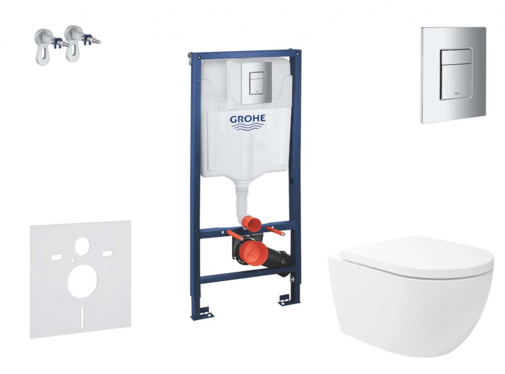 Set obsahuje předstěnový instalační modul Grohe Rapid SL se splachovací nádržkou pod omítku keramický závěsný klozet kielle Oudee se sedátkem SoftClose ovládací tlačítko Grohe Skate Cosmopolitan pro 2-činné splachování soupravu pro tlumení hluku a nástěnnou přípojku Předstěnový instalační modul Rapid SL pro závěsné WC se splachovací nádrží GD 2 stavební výška 1,13 m pro předstěnovou montáž nebo montáž do lehké příčky ocelový rám, práškové lakování, samonosný pro obložení sádrokartonem, kompletně předmontováno pevné objektové přípojky rychlé nastavení, uzamykatelné upevňovací materiál certifikováno TÜV 2 úchyty pro WC upevnění keramiky WC keramika s plochou menší než 205 mm vyžaduje dodatečné příslušenství 38 779 000 rozteč šroubů 180/230 mm odpadní koleno Ø 90 mm hloubkově nastavitelné redukce Ø 90/110 mm přívodní a odpadní souprava splachovací nádrž GD 2, 6 - 9 l nastaveno z výroby na 6 l - 3 l pneumatický odtokový ventil nabízí 3 režimy chodu: 2-činné splachování nebo start/stop a nebo nepřerušitelné (pouze start) přívod vody zleva/zprava nebo zezadu skupina armatur I - nízká hlučnost izolováno od kondenzující vody přípojka vody DN 15 s integrovaným rohovým ventilem a šroubovým spojem bez použití nářadí pro instalaci není třeba nářadí kontrolní hřídele včetně ochrany během fáze výstavby pro vertikální nebo horizontální použití Ovládací tlačítko Skate Cosmopolitan pro 2-činné splachování nebo funkci start/stop pro pneumatický odtokový ventil AV1 horizontální a vertikální montáž rozměry: 156 x 197 mm vyrobeno z ABS GROHE StarLight chromový povrch GROHE EcoJoy technologie pro nízkou spotřebu vody a perfektní průtok Nástěnná přípojka Rapid SL pro předstěnovou montáž pro upevnění prvků ke zdi nebo před lehkou příčku postupné nastavení hloubky 130-230 mm úchyt pro obložení pro jednotlivou nebo řadovou montáž upevňovací materiál 2 kusy v balení Závěsné WC Vortex Rimless - bezokrajové provedení, zajišťuje dokonalé očištění toalety pomocí vodního víru barva: bílá rozměry: 360 x 525 mm skryté upevnění hluboké splachování splachovací objem 4/6 l WC sedátko s funkcí pomalého sklápění SoftClose barva: bílá EasyLock lehce odnímatelné pro snadnou údržbu Protihluková sada pro závěsné WC nebo závěsný bidet pro montáž keramiky se vzdáleností upevnění 18 cm nebo 23 cm přerušuje přenos hluku u WC a bidetu materiál: polyetylén-pěna obsahuje: 1x zvukově izolační vložku, 2x podložku