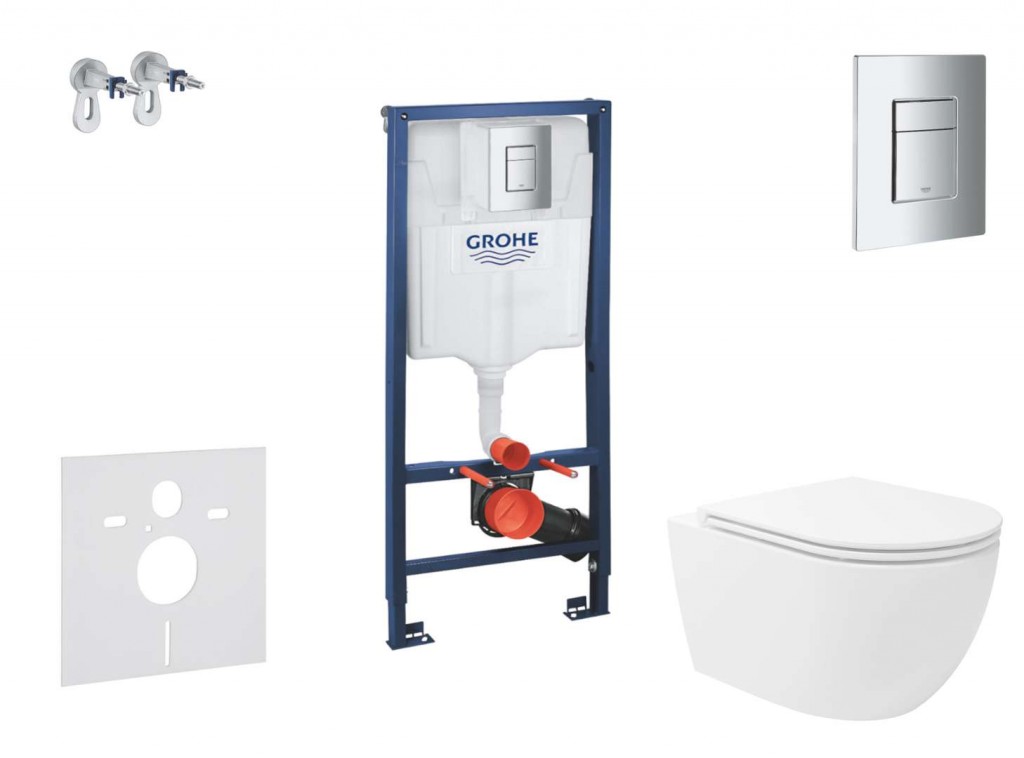 Set obsahuje předstěnový instalační modul Grohe Rapid SL se splachovací nádržkou pod omítku keramický závěsný klozet kielle Oudee se sedátkem SoftClose ovládací tlačítko Grohe Skate Cosmopolitan pro 2-činné splachování soupravu pro tlumení hluku a nástěnnou přípojku Předstěnový instalační modul Rapid SL pro závěsné WC se splachovací nádrží GD 2 stavební výška 1,13 m pro předstěnovou montáž nebo montáž do lehké příčky ocelový rám, práškové lakování, samonosný pro obložení sádrokartonem, kompletně předmontováno pevné objektové přípojky rychlé nastavení, uzamykatelné upevňovací materiál certifikováno TÜV 2 úchyty pro WC upevnění keramiky WC keramika s plochou menší než 205 mm vyžaduje dodatečné příslušenství 38 779 000 rozteč šroubů 180/230 mm odpadní koleno Ø 90 mm hloubkově nastavitelné redukce Ø 90/110 mm přívodní a odpadní souprava splachovací nádrž GD 2, 6 - 9 l nastaveno z výroby na 6 l - 3 l pneumatický odtokový ventil nabízí 3 režimy chodu: 2-činné splachování nebo start/stop a nebo nepřerušitelné (pouze start) přívod vody zleva/zprava nebo zezadu skupina armatur I - nízká hlučnost izolováno od kondenzující vody přípojka vody DN 15 s integrovaným rohovým ventilem a šroubovým spojem bez použití nářadí pro instalaci není třeba nářadí kontrolní hřídele včetně ochrany během fáze výstavby pro vertikální nebo horizontální použití Ovládací tlačítko Skate Cosmopolitan pro 2-činné splachování nebo funkci start/stop pro pneumatický odtokový ventil AV1 horizontální a vertikální montáž rozměry: 156 x 197 mm vyrobeno z ABS GROHE StarLight chromový povrch GROHE EcoJoy technologie pro nízkou spotřebu vody a perfektní průtok Nástěnná přípojka Rapid SL pro předstěnovou montáž pro upevnění prvků ke zdi nebo před lehkou příčku postupné nastavení hloubky 130-230 mm úchyt pro obložení pro jednotlivou nebo řadovou montáž upevňovací materiál 2 kusy v balení Závěsné WC Vortex Rimless - bezokrajové provedení, zajišťuje dokonalé očištění toalety pomocí vodního víru barva: bílá rozměry: 360 x 525 mm skryté upevnění hluboké splachování splachovací objem 4/6 l WC sedátko s funkcí pomalého sklápění SoftClose barva: bílá EasyLock lehce odnímatelné pro snadnou údržbu Protihluková sada pro závěsné WC nebo závěsný bidet pro montáž keramiky se vzdáleností upevnění 18 cm nebo 23 cm přerušuje přenos hluku u WC a bidetu materiál: polyetylén-pěna obsahuje: 1x zvukově izolační vložku, 2x podložku