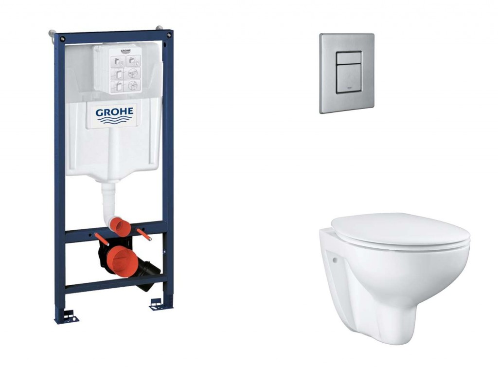 Kompletní WC set obsahuje podomítkový modul Rapid SL závěsné WC Bau Ceramic, s technologií Rimless WC sedátko, s technologií SoftClose splachovací tlačítko Skate Cosmopolitan, kartáčovaná nerezová ocel Instalační prvek Rapid SL pro závěsné WC splachovací nádrž GD 2 stavební výška 1,13 m pro předstěnovou montáž nebo montáž do lehké příčky ocelový rám, práškové lakování, samonosný pro obložení sádrokartonem, kompletně předmontováno pevné objektové přípojky pro jednotlivou montáž nebo montáž na kolejnici rychlé nastavení, uzamykatelné upevňovací materiál certifikováno TÜV 2 úchyty pro WC upevnění keramiky - rozteč šroubů 180/230 mm WC keramika s plochou menší než 205 mm vyžaduje dodatečné příslušenství 38 779 000 odpadní koleno Ø 90 mm hloubkově nastavitelné redukce Ø 90/110 mm přívodní a odpadní souprava splachovací nádrž 6 - 9 l (nastaveno z výroby na 6 - 3 l) pneumatický odtokový ventil nabízí 3 režimy chodu:2-činné splachování, start/stop a nebo nepřerušitelné (pouze start) přívod vody zleva / zprava nebo zezadu skupina armatur I - nízká hlučnost izolováno od kondenzující vody přípojka vody DN 15 s integrovaným rohovým ventilem a šroubovým spojem bez použití nářadí pro instalaci není třeba nářadí kontrolní hřídele včetně ochrany během fáze výstavby pro vertikální nebo horizontální použití splachovacích tlačítek včetně nástěnných držáků 38 558 00M pro montáž na stěnu Závěsné WC s bezokrajovou konstrukcí - rimless barva: alpská bílá materiál: glazovaná hladká keramika rozměry: 531 x 368 x 373 mm (H/Š/V) hluboké splachování zadní odpad objem spláchnutí 3/6 l WC sedátko s funkcí pomalého sklápění SoftClose materiál: duroplast panty z nerezové oceli snadná demontáž - upevnění shora Ovládací tlačítko Skate Cosmopolitan barva: kartáčovaná nerezová ocel rozměr: 156 x 197 x 12 mm materiál: ABS povrchová úprava GROHE Long-Life pro 2-činné splachování nebo funkci start/stop pro pneumatický odtokový ventil AV1 GROHE Water Saving – méně vody, dokonalý průtok