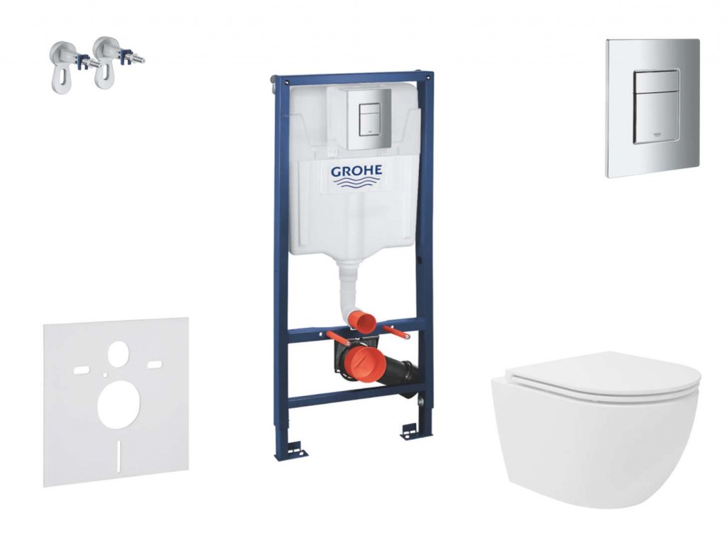 Set obsahuje předstěnový instalační modul Grohe Rapid SL se splachovací nádržkou pod omítku keramický závěsný kompaktní klozet kielle Oudee se sedátkem SoftClose ovládací tlačítko Grohe Skate Cosmopolitan pro 2-činné splachování soupravu pro tlumení hluku a nástěnnou přípojku Předstěnový instalační modul Rapid SL pro závěsné WC se splachovací nádrží GD 2 stavební výška 1,13 m pro předstěnovou montáž nebo montáž do lehké příčky ocelový rám, práškové lakování, samonosný pro obložení sádrokartonem, kompletně předmontováno pevné objektové přípojky rychlé nastavení, uzamykatelné upevňovací materiál certifikováno TÜV 2 úchyty pro WC upevnění keramiky WC keramika s plochou menší než 205 mm vyžaduje dodatečné příslušenství 38 779 000 rozteč šroubů 180/230 mm odpadní koleno Ø 90 mm hloubkově nastavitelné redukce Ø 90/110 mm přívodní a odpadní souprava splachovací nádrž GD 2, 6 - 9 l nastaveno z výroby na 6 l - 3 l pneumatický odtokový ventil nabízí 3 režimy chodu: 2-činné splachování nebo start/stop a nebo nepřerušitelné (pouze start) přívod vody zleva/zprava nebo zezadu skupina armatur I - nízká hlučnost izolováno od kondenzující vody přípojka vody DN 15 s integrovaným rohovým ventilem a šroubovým spojem bez použití nářadí pro instalaci není třeba nářadí kontrolní hřídele včetně ochrany během fáze výstavby pro vertikální nebo horizontální použití Ovládací tlačítko Skate Cosmopolitan pro 2-činné splachování nebo funkci start/stop pro pneumatický odtokový ventil AV1 horizontální a vertikální montáž rozměry: 156 x 197 mm vyrobeno z ABS GROHE StarLight chromový povrch GROHE EcoJoy technologie pro nízkou spotřebu vody a perfektní průtok Nástěnná přípojka Rapid SL pro předstěnovou montáž pro upevnění prvků ke zdi nebo před lehkou příčku postupné nastavení hloubky 130-230 mm úchyt pro obložení pro jednotlivou nebo řadovou montáž upevňovací materiál 2 kusy v balení Závěsné WC Vortex Rimless - bezokrajové provedení, zajišťuje dokonalé očištění toalety pomocí vodního víru barva: bílá rozměry: 360 x 480 mm skryté upevnění hluboké splachování splachovací objem 4/6 l WC sedátko s funkcí pomalého sklápění SoftClose barva: bílá EasyLock lehce odnímatelné pro snadnou údržbu Protihluková sada pro závěsné WC nebo závěsný bidet pro montáž keramiky se vzdáleností upevnění 18 cm nebo 23 cm přerušuje přenos hluku u WC a bidetu materiál: polyetylén-pěna obsahuje: 1x zvukově izolační vložku, 2x podložku