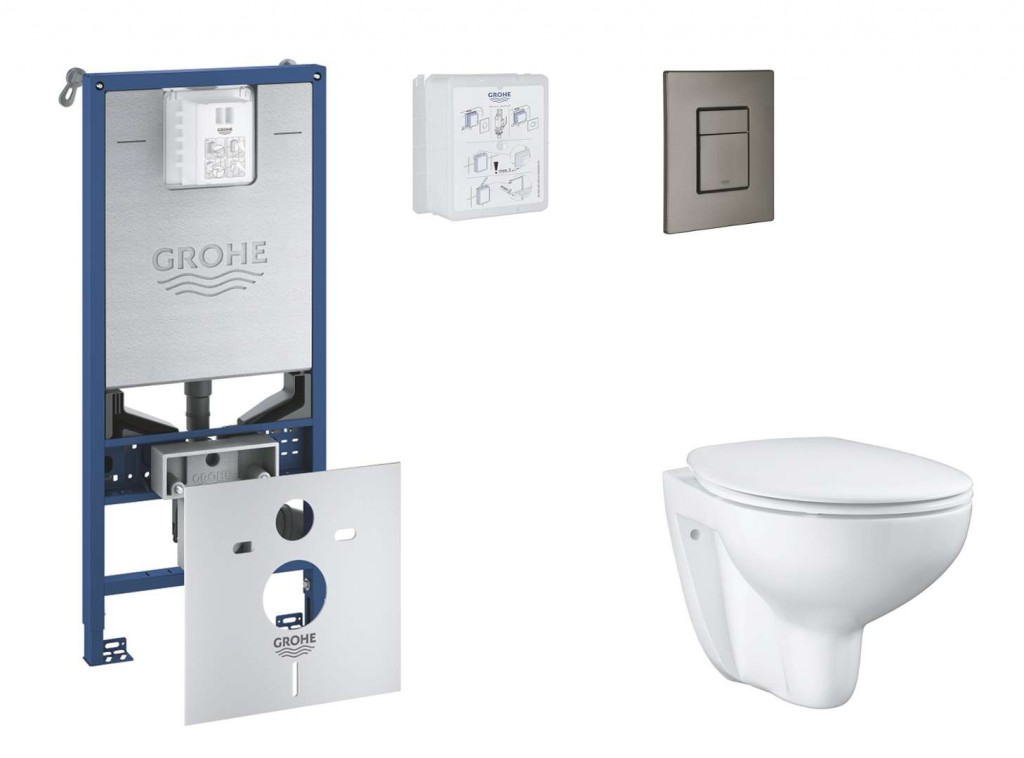Kompletní WC set obsahuje podomítkový modul Rapid SLX závěsné WC Bau Ceramic, s technologií Rimless WC sedátko, s technologií SoftClose splachovací tlačítko Skate Cosmopolitan, kartáčovaný Hard Graphite revizní šachtu Rapid SLX modul pro závěsné WC se splachovací nádrží GD 2, s nástěnnými držáky a protihlukovou izolací revizní šachta s integrovanou přípojkou pro sprchové toalety Plug & Play plně funkční integrovaná elektrická zásuvka integrovaný regulátor průtoku - modul tak lze využít s toaletami s bezokrajovým splachováním vhodné pro sprchové toalety (vodní přípojka) malý revizní otvor pro malá splachovací tlačítka přístup k vodovodní a elektrické přípojce pro předstěnovou montáž nebo montáž do lehké příčky ocelový rám, práškové lakování, samonosný pro obložení sádrokartonem, kompletně předmontováno pevné objektové přípojky rychlé nastavení, uzamykatelné upevňovací materiál certifikováno TÜV 2 úchyty pro WC upevnění keramiky - rozteč šroubů 180/230 mm odpadní koleno Ø 90 mm hloubkově nastavitelné redukce Ø 90/110 mm přívodní a odpadní souprava GROHE EcoJoy - snižuje spotřebu vody až o 50 % GROHE Whisper - technologie pomáhá zabránit šíření zvuku stěnami splachovací nádrž GD 2, 6 - 9 l (nastaveno z výroby na 6 l - 3 l) pneumatický odtokový ventil nabízí 3 režimy chodu: 2-činné splachování, start/stop a nebo nepřerušitelné (pouze start) přívod vody zprava nebo zezadu skupina armatur I - nízká hlučnost izolováno od kondenzující vody přípojka vody DN 15 s integrovaným rohovým ventilem a šroubovým spojem pro instalaci není třeba nářadí kontrolní hřídele včetně ochrany během fáze výstavby Závěsné WC Bau Ceramic barva: alpská bílá materiál: glazovaná hladká keramika rozměry: 531 x 368 x 373 mm (H/Š/V) hluboké splachování, zadní odpad s technologií - Rimless objem spláchnutí 3/6 l WC sedátko s funkcí pomalého sklápění SoftClose materiál: duroplast panty z nerezové oceli snadná demontáž - upevnění shora Ovládací tlačítko Skate Cosmopolitan barva: kartáčovaný Hard Graphite rozměr: 156 x 197 x 12 mm materiál: ABS povrchová úprava GROHE Long-Life pro 2-činné splachování nebo funkci start/stop pro pneumatický odtokový ventil AV1 GROHE Water Saving – méně vody, dokonalý průtok Revizní šachta pro kombinaci s nádržkami Rapid SLX rozměr: 136 x 178 x 73 mm (Š/V/H)