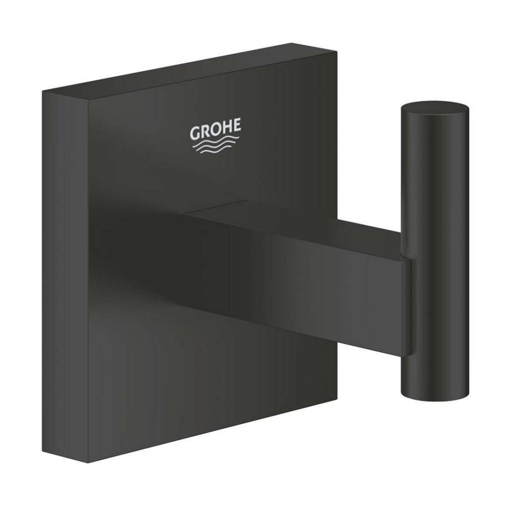 Háček na koupací plášť barva: matte black - matná černá GROHE Long-Life povrch materiál: kov čtvercová rozeta nástěnná instalace skryté upevnění Instalace vrtáním nebo lepením - upevňovací materiál (šrouby a hmoždinky) je součástí balení. Lepidlo je možné dokoupit - doporučujeme dokoupit 1x GROHE QuickGlue A1.