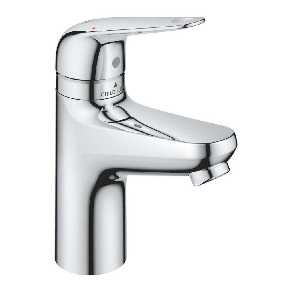 Páková umyvadlová baterie, velikost S barva: chrom povrchová úprava GROHE Long-Life výška: 162 mm délka raménka: 103 mm komfortní zóna: 82 mm keramická kartuše GROHE Long-Life 28 mm s mechanickou dětskou pojistkou - zabraňuje opaření GROHE QuickTool součástí balení GROHE Water Saving průtok 5 l/min (při tlaku 3 bar) hladké tělo flexibilní připojovací hadice připojení G3/8 s plastovou výpustí Push-Open