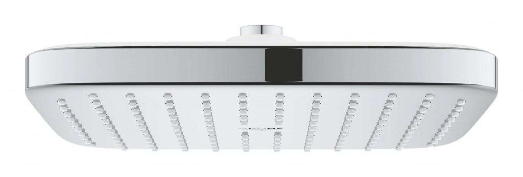 Horní sprcha s jedním druhem sprchového proudu rozměr sprchové hlavice 250 mm x 250 mm kloub s úhlem otočení ± 10° přípojný závit DN 15 GROHE EcoJoy 9,5 l/min omezovač průtoku GROHE DreamSpray perfektní vodní paprsky GROHE StarLight chromový povrch GROHE DripStop minimalizuje odkapávání GROHE SpeedClean odstranění vodního kamene přetřením vnitřní WaterGuide pro delší životnost vhodné pro průtokové ohřívače vody doporučený minimální tlak vody 1,0 bar