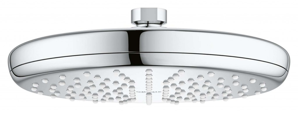 Horní sprcha Vitalio Start 210 průměr 210 mm sprchový proud: Rain kulový kloub s úhlem otočení +/-20 ° přípojný závit DN 15 GROHE EcoJoy 9,5 l/min omezovač průtoku GROHE DreamSpray perfektní vodní paprsky GROHE StarLight chromový povrch GROHE SpeedClean odstranění vodního kamene přetřením vnitřní WaterGuide pro delší životnost vhodné pro průtokové ohřívače vody minimální tlak 1,0 bar