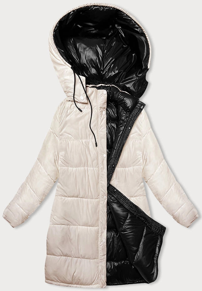 Černo-ecru hrubší oboustranná dámská zimní bunda (V768g) odstíny černé XL (42)