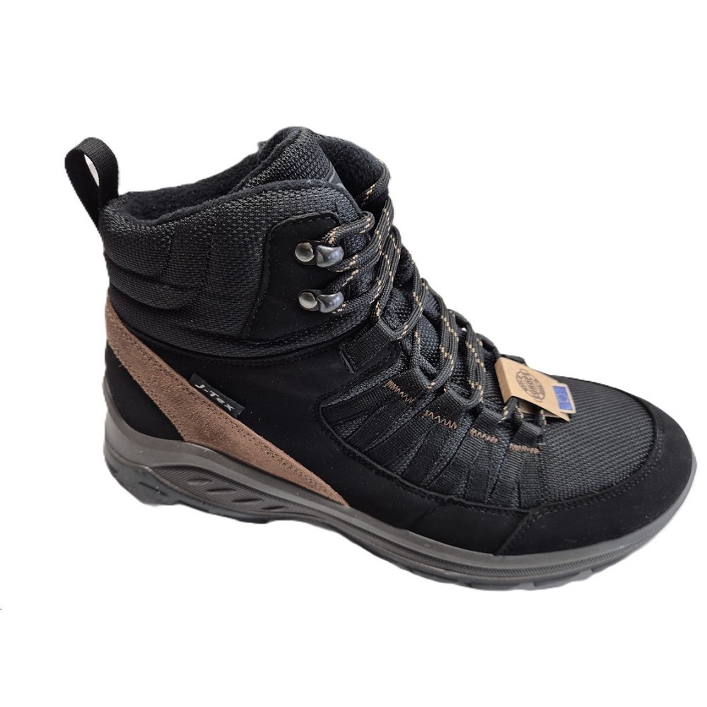 Obuv treková kotníková JACALU pánská černá Pánské zimní boty JACALU spojují funkčnost, odolnost a komfort. Jsou ideální jak do města, tak na zimní výlety či procházky v přírodě. Horní část je vyrobena z kombinace odolných syntetických materiálů a textilu, které zajišťují dlouhou životnost a pohodlí při každém kroku. Boty jsou uvnitř zateplené měkkým hřejivým materiálem, který udržuje nohy v teple i během mrazivých dnů. Pevná protiklouzavá podrážka poskytuje výbornou stabilitu na různých površích a výztuhy v oblasti paty a špičky chrání nohu před nárazy. Vlastnosti: Barva: černá s hnědými detaily Membrána: J-TEX voděodolná a prodyšná podzim / zima Materiál: kombinace textilu a syntetiky Zateplení: hřejivý vnitřní materiál Podrážka: pevná, odolná, protiskluzová Styl: sportovně-outdoorový Velikost prosím napište do poznámky Velikosti: 41-46