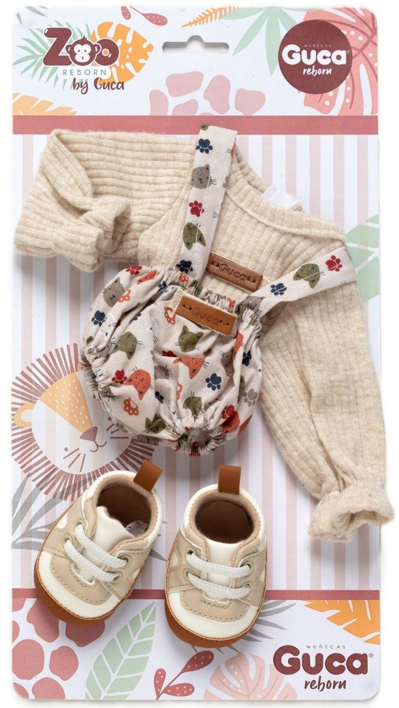 3dílný set: 2 kusy oblečení a botičky pro opičku miminko REBORN velikosti 32 cm. Vyrobeno ručně ve Španělsku, baleno v igelitovém obalu na kartonové podložce. Doporučený věk od 3 let.