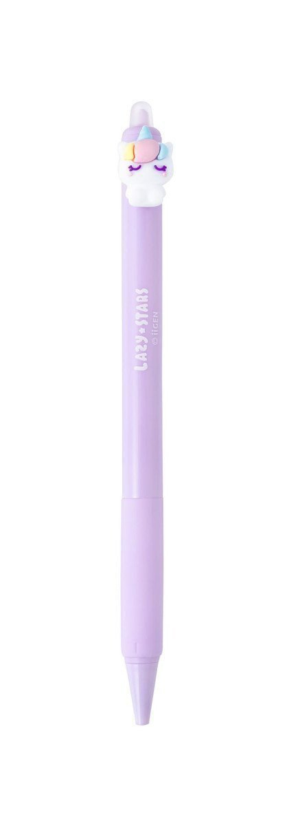 Klikací gumovací gelový roller Jednorožec s hrotem 0,5 mm, barva inkoustu - fialová. Ideální do školního penálu i jako dárek– pero píše hladce a chyby lze snadno vymazat pomocí praktické gumovací koncovky.
