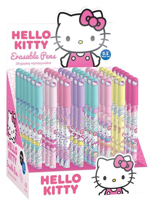 Konec chybám a škrtání v sešitech. Prostě je vymaž a přepiš. Pevná pryž na konci pera a jedinečné složení inkoustu zaručuje jednoduché a opakované gumování. K dispozici náhradní náplň.Kolekce gumovatelných per v matném provedení a víčkem s motivem Hello Kitty.• šířka stopy: 0,5 mm• dostupná náhradní náplň R02000PTR• 6 motivů• barva náplně: modrá• obsah balení: 48 ks/displej