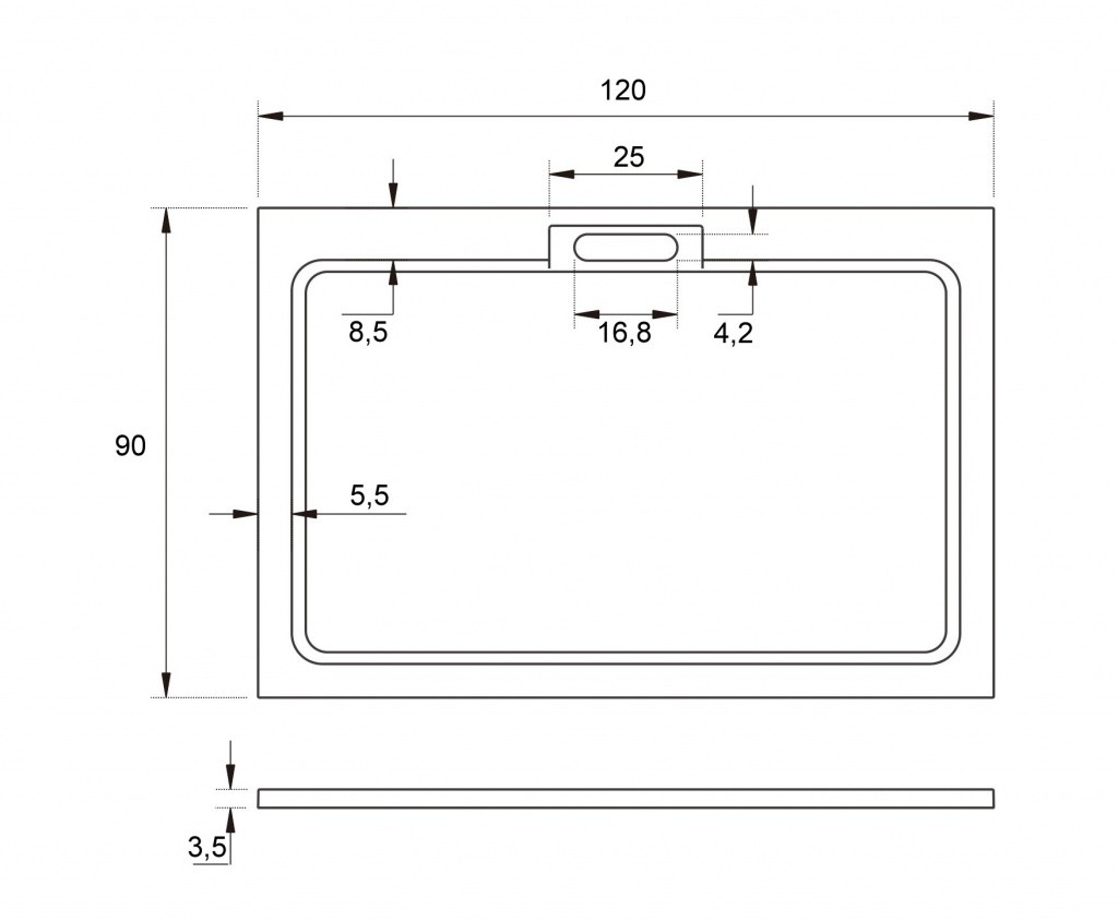 Vanička čtvercová Black Stone 90x90x12 Espera Plus AQM4631CST