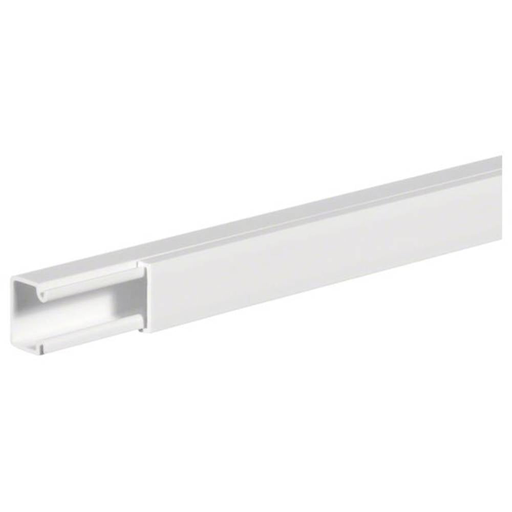 Kabelový kanál z PVC LF 10x10mm, dopravní bílá. Elektroinstalační kanál elektrického vedení z plastu podle DIN EN 50085-1. Spodní díl kanálu s předřezanými otvory pro podlahu ve vzdálenosti 125 mm, od