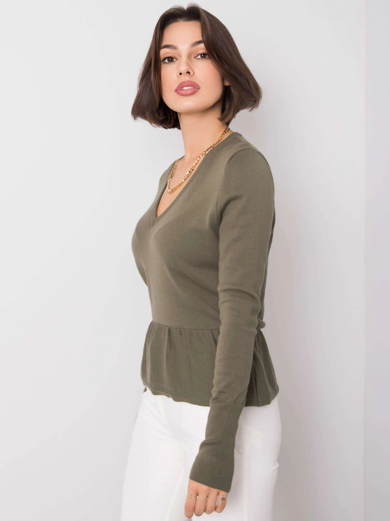 RUE PARIS Khaki svetr s výstřihem do V. typ tkaniny: žebrovaná Složení materiálu: 95% polyester, 5% elastan způsob praní: praní v pračce na 30 °C Modelka má na sobě velikost S. Rozměry modelky: výška 163 cm, prsa 85 cm, pas 69 cm, boky 84 cm. Rozměry svetru ve velikosti S měřené na plocho: šířka v podpaží - 45 cm, celková délka - 61 cm, délka rukávu - 67 cmVelikost Alt.VýškaObvod hrudníku hrudníkExterní. délka. rukávVnitřní. délka rukávůXS34156-164785747S36160-164825949M38162-172866151L40164-174916353