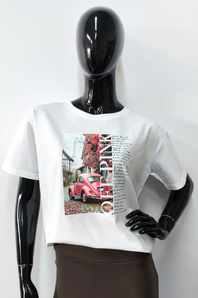 Podkreśl swój styl z wyjątkowym t-shirtem damskim z nadrukiem! Klasyczny krój w połączeniu z elastyczną dzianiną bawełnianą gwarantuje wygodę i swobodę ruchów przez cały dzień. Wysoka jakość materiału (95% bawełna, 5% elastan) sprawia, że tkanina jest miękka, przyjemna dla skóry, a jednocześnie trwała i lekko rozciągliwa. Ten model to idealny wybór zarówno na co dzień, jak i do aktywnego stylu życia – świetnie sprawdzi się w połączeniu z jeansami, legginsami czy spodenkami. Modny nadruk dodaje charakteru i nowoczesnego wyglądu.