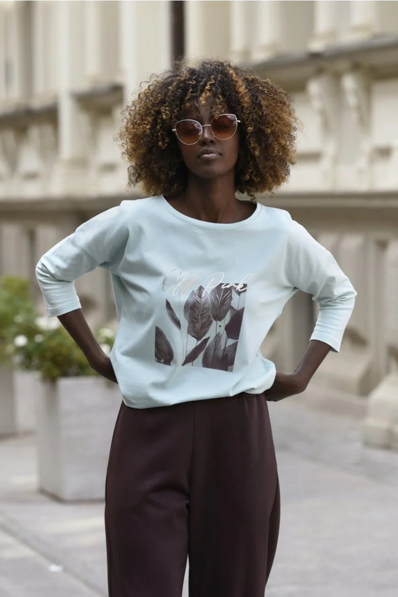 Bluzka Emanuela to idealna propozycja dla kobiet, które cenią sobie lekki styl i funkcjonalność. Rękawy o długości 3/4 dodają jej lekkości, a jednocześnie sprawiają, że świetnie sprawdza się zarówno w cieplejsze dni, jak i w sezonie przejściowym. Dłuższy, zaokrąglony tył to praktyczne i modne rozwiązanie – zapewnia swobodę ruchów i świetnie układa się na sylwetce. Dopasowany krój podkreśla kobiece kształty, a delikatny nadruk z motywem jesiennym na przodzie bluzki nadaje całości oryginalnego charakteru. Wykonana z wysokiej jakości bawełny z dodatkiem elastanu, gwarantuje komfort noszenia i dobrą cyrkulację powietrza przez cały dzień.