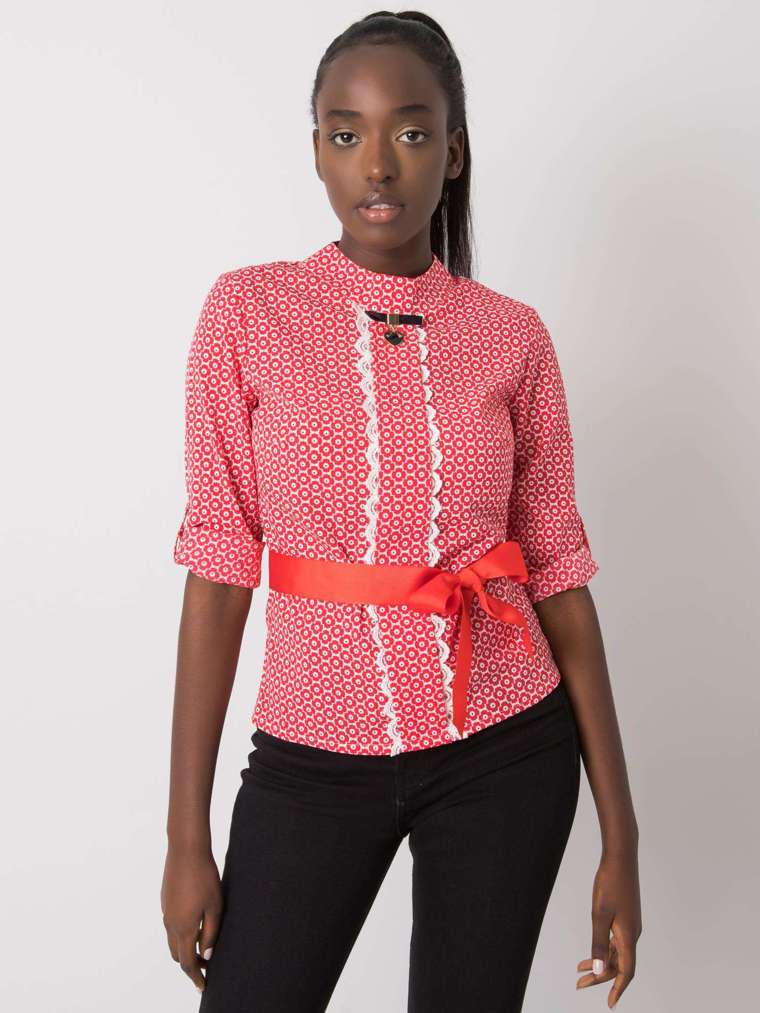 Červenobílá halenka s květinovými vzory . doplňky: pásek, šperky, zapínání na zip složení látky: 30 % bavlna, 65 % polyester, 5 % elastan způsob praní: praní v pračce na 30 °C Modelka má na sobě velikost 36. Rozměry modelky: výška 170 cm, poprsí 84 cm, pas 60 cm, boky 93 cm. Rozměry halenky velikosti 36 měřené na plocho: šířka v podpaží - 42 cm, celková délka - 54 cm, délka rukávu - 41 cmVelikost Alt.VýškaObvod hrudníku hrudníkExterní. délka. rukávVnitřní. délka rukávu36S160-16882594938M162-17286615140L164-17491635342XL166-178966555