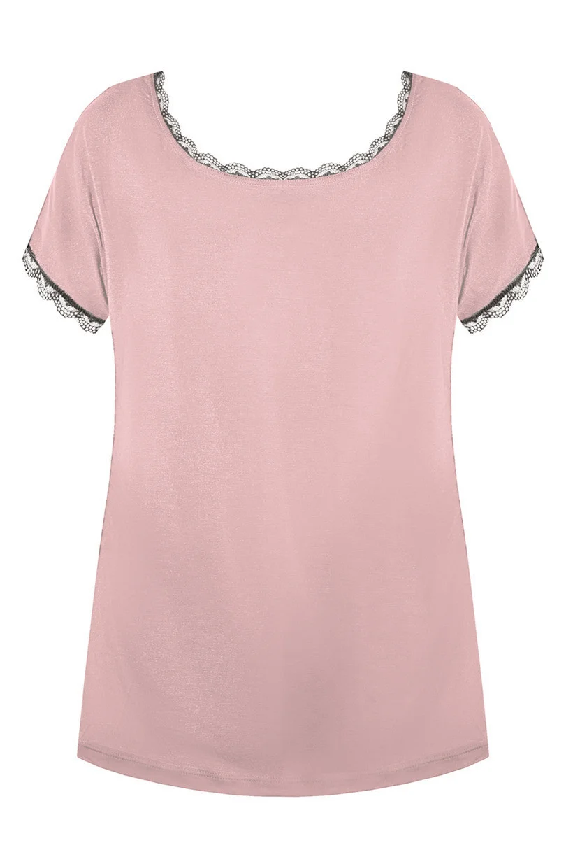 Dámská viskózová halenka s jemnými krajkovými lemovanými rukávy, kulatý výstřih. Složení: 70% viskóza, 14% polyamid, 8% elastan, 8% ostatní .