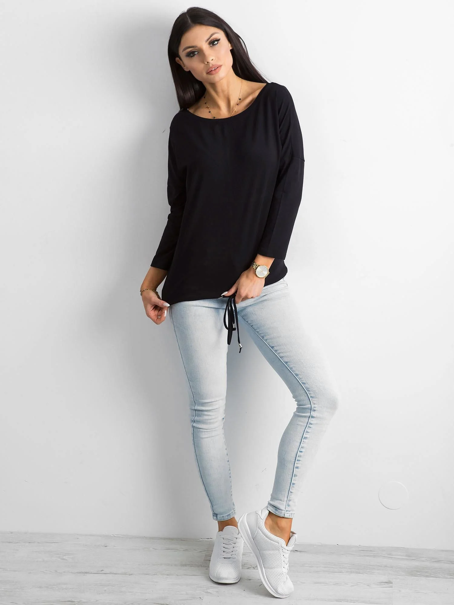 Czarna bluzka Fiona. Górne części garderoby to bardzo ważne elementy każdej kobiecej szafy. Trudno w ogóle wyobrazić sobie bez nich nasze codzienne funkcjonowanie. Szczególną rolę odgrywają wśród nich modne bluzki, które stanowią zwykle znaczną część naszych szuflad i półek. Dlatego zwróć uwagę na tę bluzkę basic, która idealnie sprawdzi się w każdej sytuacji i założysz ją na każdą nieformalną okazję. Gładka bluzka z bawełny to najlepszy wybór na co dzień, ponieważ zapewnia wyjątkową wygodę noszenia, komfort przez cały dzień oraz przewiewność. Ten model wykonano z oddychającej bawełny z dodatkiem odrobiny elastanu, który sprawia, że oferowana bluzka basic jest dodatkowo miękka i miła w kontakcie ze skórą. Czarna bluzka basic to absolutny must have, który sprawdzi się idealnie do codziennych stylizacji, ale gdy trzeba poradzi sobie także w nieco bardziej wyjściowych zestawach. Jest nie tylko uniwersalna i pasuje do wszystkiego, ale także emanuje kobiCzarna bluzka bawełniana to bez dyskusji podstawowy element garderoby każdej kobiety ceniącej najnowsze trendy oraz minimalistyczny sposób ubierania się. Jest więc absolutnym must have'em, który powinna mieć w szafie każda z Was. Prezentowany model z serii Fiona oprócz kobiecego dekoltu posiada również modne rękawy 3/4 oraz subtelny ściągacz na dole zakończony dwoma troczkami. Takie pozornie nieistotne detale pięknie podkręcają wygląd bluzki basic, nie odbierając jej jednocześnie minimalistycznego charakteru. Ponadto ta czarna bluzka basic ma również trochę luźniejszy fason, który wygodnie układa się na sylwetce, tuszuje mniejsze mankamenty figury oraz jest bardzo komfortowy w noszeniu. Taki design czyni z niej najlepszy wybór na co dzień, ponieważ gwarantuje uniwersalność i idealne dopasowanie do wszystkich pozostałych elementów garderoby. Jeśli potrzebujesz innych kolorów bluzki basic z tego modelu, to przejrzyj całą gamę dostępnych odcieni i wybierz już teraz swoj materiálové složení: 90 % bavlna, 10 % elastanzpůsob praní: praní v pračce na 30 °CModelka má na sobě velikost S. Míry modelky: výška 168 cm, prsa 89 cm, pas 60 cm, boky 91 cm.Velikost alt.VýškaObvod hrudníkuVnější délka rukávůVnější délka rukávuXS34156-164785747S36160-164825949M38162-172866151L40164-174916353XL42166-178966555