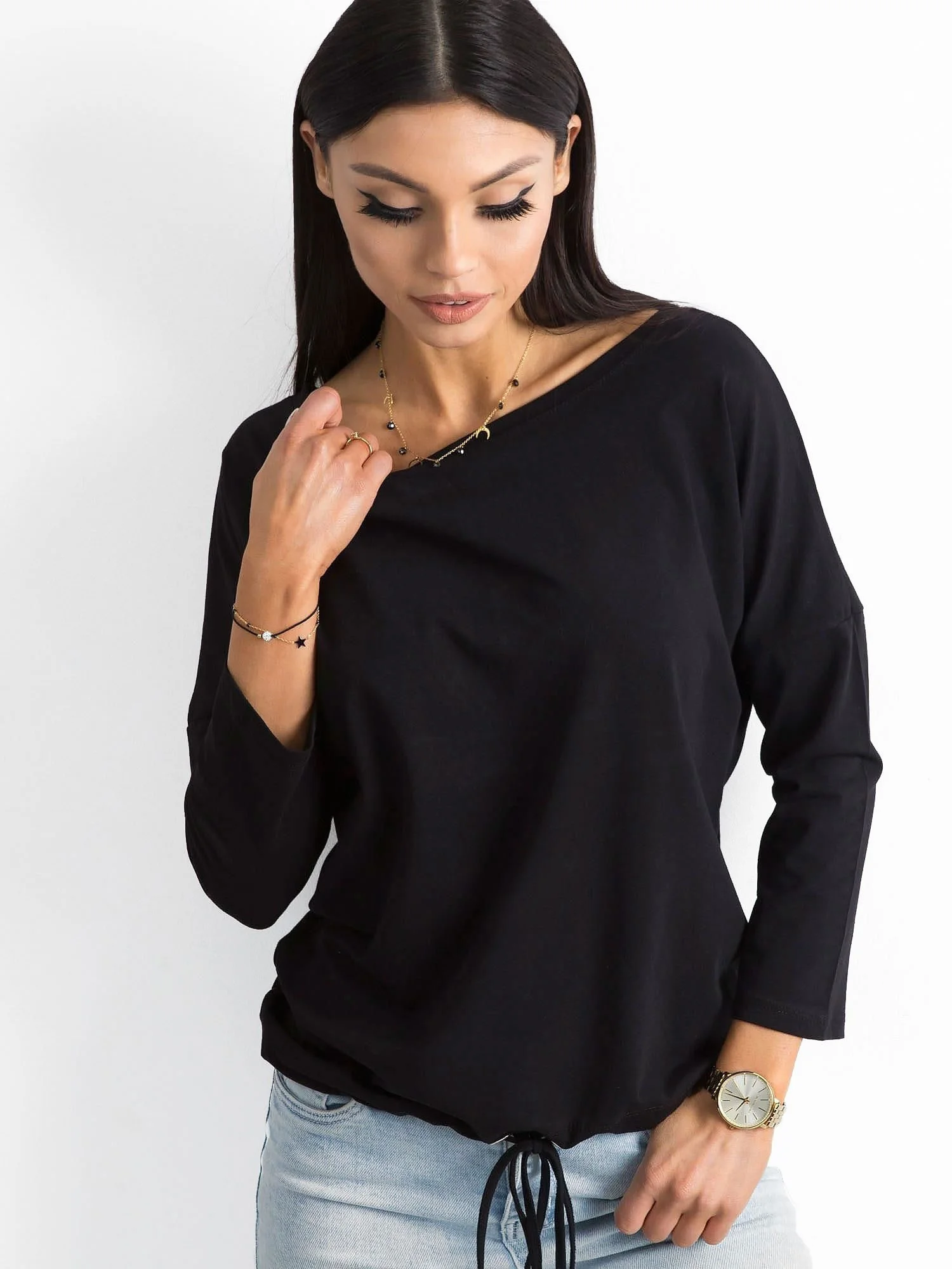 Czarna bluzka Fiona. Górne części garderoby to bardzo ważne elementy każdej kobiecej szafy. Trudno w ogóle wyobrazić sobie bez nich nasze codzienne funkcjonowanie. Szczególną rolę odgrywają wśród nich modne bluzki, które stanowią zwykle znaczną część naszych szuflad i półek. Dlatego zwróć uwagę na tę bluzkę basic, która idealnie sprawdzi się w każdej sytuacji i założysz ją na każdą nieformalną okazję. Gładka bluzka z bawełny to najlepszy wybór na co dzień, ponieważ zapewnia wyjątkową wygodę noszenia, komfort przez cały dzień oraz przewiewność. Ten model wykonano z oddychającej bawełny z dodatkiem odrobiny elastanu, który sprawia, że oferowana bluzka basic jest dodatkowo miękka i miła w kontakcie ze skórą. Czarna bluzka basic to absolutny must have, który sprawdzi się idealnie do codziennych stylizacji, ale gdy trzeba poradzi sobie także w nieco bardziej wyjściowych zestawach. Jest nie tylko uniwersalna i pasuje do wszystkiego, ale także emanuje kobiCzarna bluzka bawełniana to bez dyskusji podstawowy element garderoby każdej kobiety ceniącej najnowsze trendy oraz minimalistyczny sposób ubierania się. Jest więc absolutnym must have'em, który powinna mieć w szafie każda z Was. Prezentowany model z serii Fiona oprócz kobiecego dekoltu posiada również modne rękawy 3/4 oraz subtelny ściągacz na dole zakończony dwoma troczkami. Takie pozornie nieistotne detale pięknie podkręcają wygląd bluzki basic, nie odbierając jej jednocześnie minimalistycznego charakteru. Ponadto ta czarna bluzka basic ma również trochę luźniejszy fason, który wygodnie układa się na sylwetce, tuszuje mniejsze mankamenty figury oraz jest bardzo komfortowy w noszeniu. Taki design czyni z niej najlepszy wybór na co dzień, ponieważ gwarantuje uniwersalność i idealne dopasowanie do wszystkich pozostałych elementów garderoby. Jeśli potrzebujesz innych kolorów bluzki basic z tego modelu, to przejrzyj całą gamę dostępnych odcieni i wybierz już teraz swoj materiálové složení: 90 % bavlna, 10 % elastanzpůsob praní: praní v pračce na 30 °CModelka má na sobě velikost S. Míry modelky: výška 168 cm, prsa 89 cm, pas 60 cm, boky 91 cm.Velikost alt.VýškaObvod hrudníkuVnější délka rukávůVnější délka rukávuXS34156-164785747S36160-164825949M38162-172866151L40164-174916353XL42166-178966555