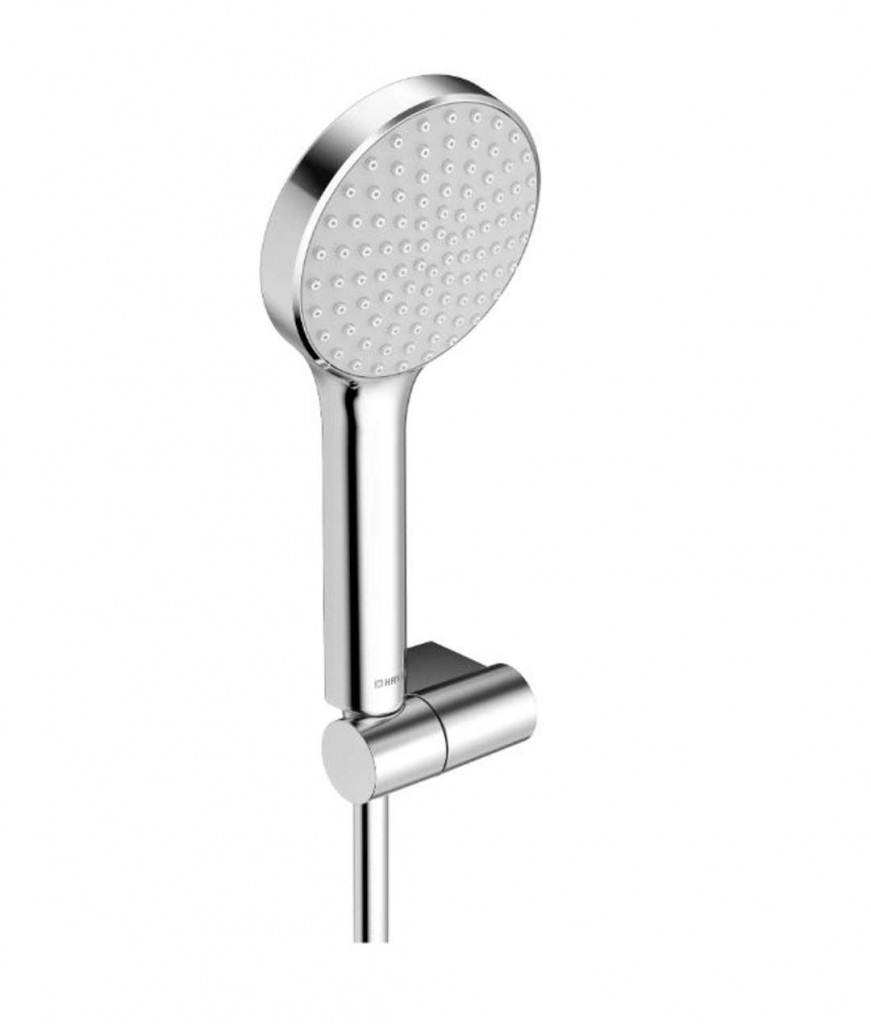Ruční sprcha s jedním druhem proudu, hadicí a držákem barva chrom/světle šedá materiál kompozit pro vanové baterie velikost sprchové hlavice 120 mm průtok při 3 barech 15 l/min 1 druh proudu, jemný-sensitive odstranění vodního kamene přetřením sprchová hadice, délka 1500 mm, s ochranou proti přetečení velikost přípojky G1/2 nástěnný držák sprchy