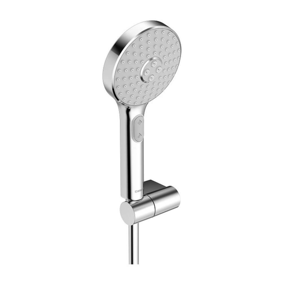 Ruční sprcha se třemi druhy proudu, hadicí a držákem barva chrom/světle šedá materiál kompozit pro vanové baterie Sensitive Spray - měkký, uvolňující proud Intense Spray - na denní použití, ideální na mytí dlouhých vlasů Pulse Spray - pulzující proud pro ošetření zaměřené na konkrétní partie těla velikost sprchové hlavice 120 mm průtok při 3 barech 15 l/min odstranění vodního kamene přetřením sprchová hadice, délka 1500 mm, s ochranou proti přetečení velikost přípojky G1/2