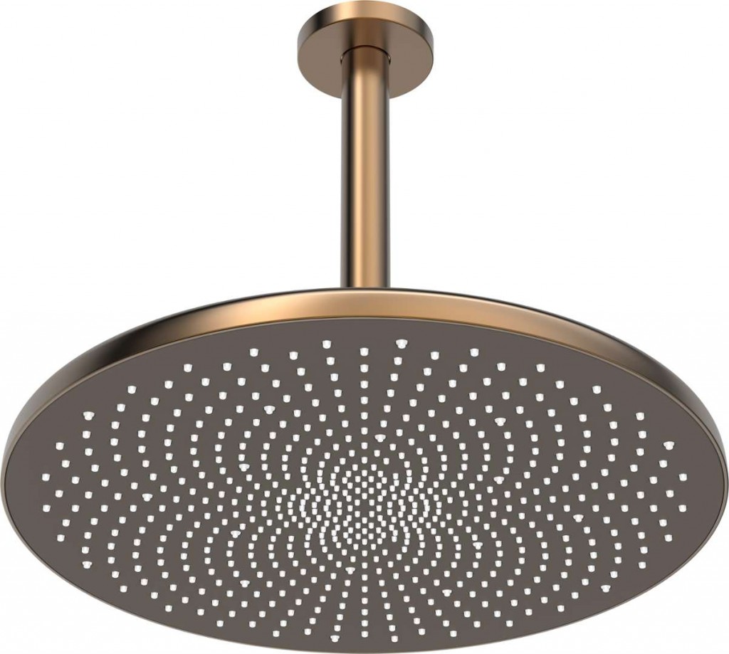 Horní sprcha s ramenem barva broušený bronz materiál mosaz/plast kulatý tvar průměr 300 mm průtok 12 l/min (při tlaku 3 bar) 1 proud otočné připojení kulového kloubu snadné a rychlé čištění vápenatých usazenin včetně stropního sprchového ramene připojení G 1/2