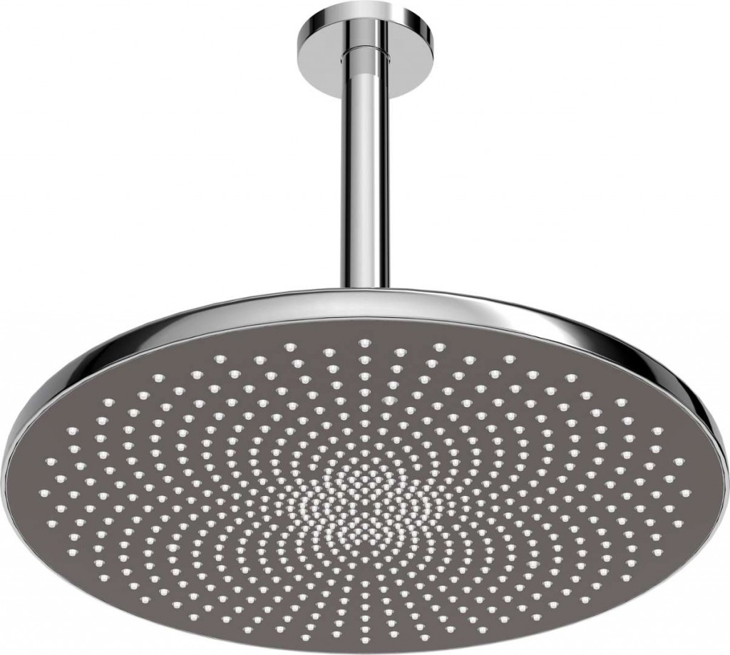 Horní sprcha s ramenem barva chrom materiál mosaz/plast kulatý tvar průměr 300 mm průtok 12 l/min (při tlaku 3 bar) 1 proud otočné připojení kulového kloubu snadné a rychlé čištění vápenatých usazenin včetně stropního sprchového ramene připojení G 1/2