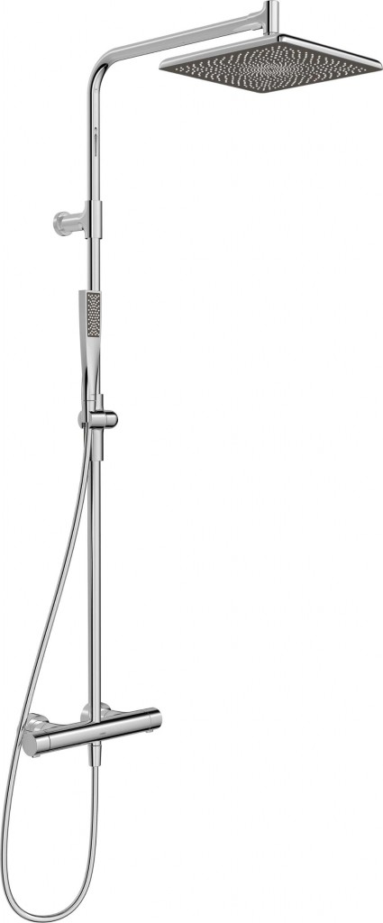 Sprchový set obsahuje: Nástěnnou termostatickou baterii barva chrom materiál mosaz/plast termostatická kartuše bezpečnostní zarážka na 38 °C kohoutkové ovládání nástěnná montáž rozteč 150±15 mm Eco funkce k omezení průtoku vody THERMO COOL technologie zabraňující opaření snadné a rychlé čištění vápenatých usazenin Hlavovou sprchu barva chrom 1 proud otočná hranatý tvar rozměr 250 x 250 mm snadné a rychlé čištění vápenatých usazenin Ruční sprchu barva chrom 1 proud - rovnoměrný a jemný proud vody snadné a rychlé čištění vápenatých usazenin Sprchovou hadici délka 1750 mm připojení G 1/2" Sprchovou tyč s držákem ruční sprchy