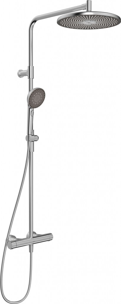 Sprchový set obsahuje: nástěnnou termostatickou baterii barva broušená ocel materiál mosaz/plast termostatická kartuše bezpečnostní zarážka na 38 °C kohoutkové ovládání nástěnná montáž rozteč 150±15 mm Eco funkce k omezení průtoku vody THERMO COOL technologie zabraňující opaření snadné a rychlé čištění vápenatých usazenin hlavovou sprchu barva broušená ocel 1 proud otočná kruhový tvar průměr 300 mm snadné a rychlé čištění vápenatých usazenin ruční sprchu barva broušená ocel průměr 110 mm 3 proudy - Pulzující/Intenzivní/Relaxační přepínání tlačítkem snadné a rychlé čištění vápenatých usazenin sprchovou hadici délka 1750 mm připojení G 1/2" sprchovou tyč s držákem ruční sprchy