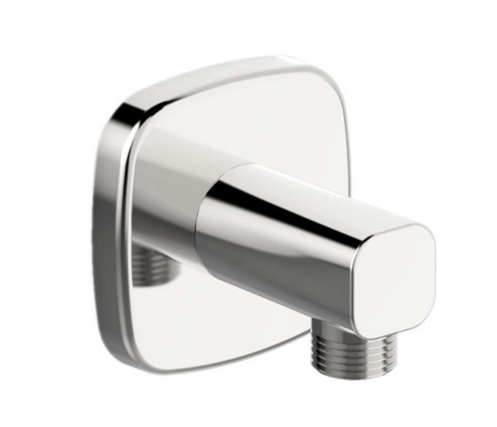 Sprchové kolínko pro připojení hadice sprchy, DN15 materiál: mosaz, barva: chrom připojení: G 1/2 nástěnná krycí rozeta soft edge - zakulacené hrany rozměry: 75 x 75 mm zabezpečeno proti zpětnému toku při použití v domácnosti