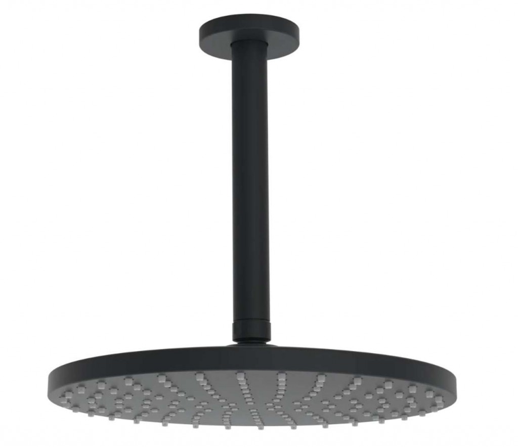 Horní sprcha s ramenem barva matná černá kulatý tvar průměr 250 mm průtok 12 l/min 1 proud - déšť kulový kloub snadná údržba - ošetřeno proti usazeninám se stropním sprchovým ramenem délka ramena 243 mm připojení G 1/2"